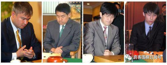 从左至右依次是:依田纪基、小林光一、王立诚、张栩