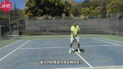 首先,拍面角度稍微开放,在保持大陆式的握拍的基础上,拍面稍微开放可以有效地将球截向对手场地的后部。(如果拍面太过开放,截击球飞行弧度容易过高甚至出界;而如果拍面过于关闭,截击球也容易下网)