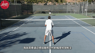 最后是随挥动作,这里分享一个小窍门,当你的回球球速不高时,增加随挥动作的幅度有助于将球推深。