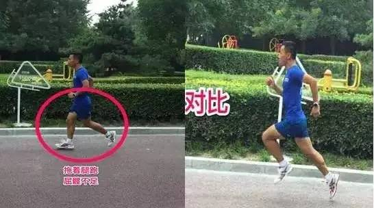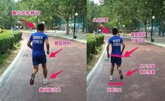 原因:核心力量不足,稳定性差,髋关节稳定性差,下肢力量不足,膝关节、踝关节稳定性差,这种跑姿特别容易造成膝关节积液和臀部肌肉损伤。