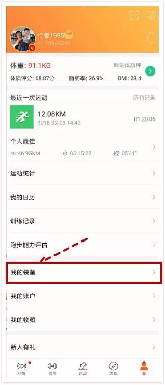 绑定智能体脂秤的入口就在个人界面“我的装备”,点击进入即可。