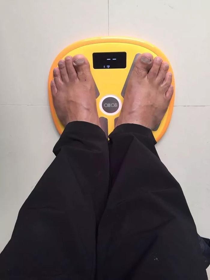 所有的体脂秤都需要人赤脚站立在秤上面才可以。这款体脂秤也一样,需要测量者保持足底干净干爽,任何污迹或者水分都会影响数据的准确性。