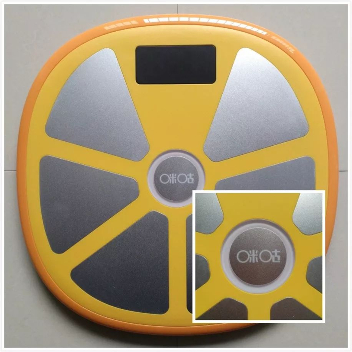 智能体脂秤正中间的LOGO,采用的是在铝合金上的打印,很有质感。