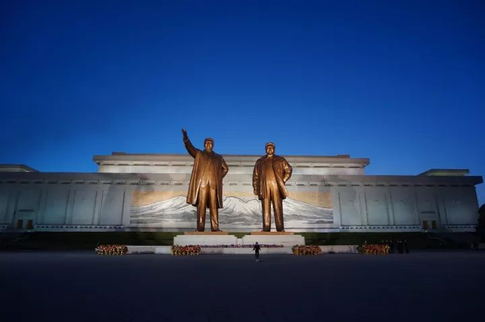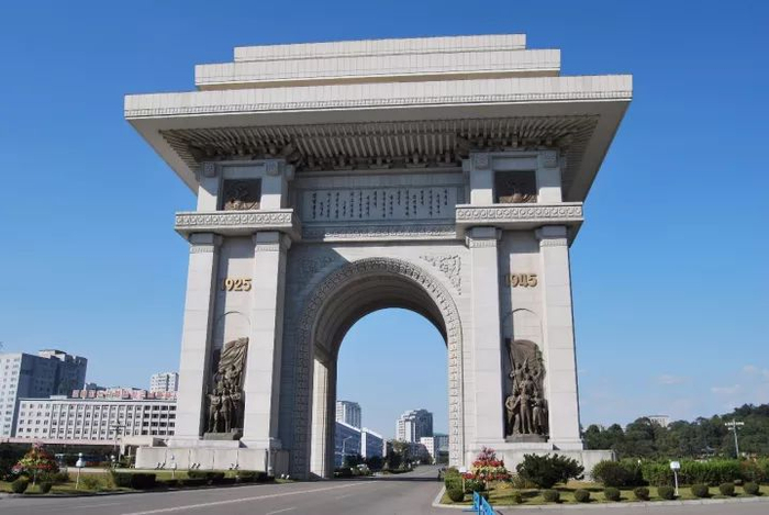 经过平壤的许多标志性建筑,纪念碑和街道,