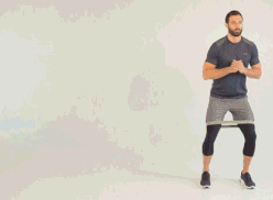 在你的大腿周围放置一个阻力带,比你的膝盖高出五厘米,保持阻力带张开,然后呈下蹲姿势,先保持静止,然后以右后方45度角向后移动右腿,收回,然后向左后方移动左腿,并始终保持下蹲姿势,依次重复。