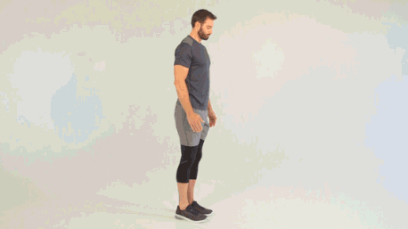 左脚支撑地面,膝盖微弯,保持背部平直,右脚慢慢向后摆动,同时保持背部平直,双臂伸直垂直地面下拉,收回,换腿,依次重复。