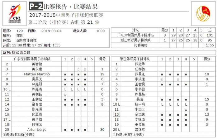 广东深圳国体男排3比1浙江体彩男排
