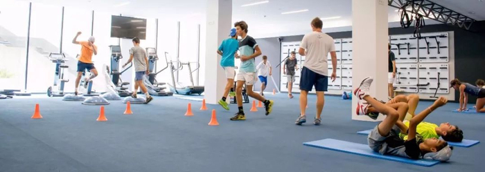 说完训练,我们再来看看校内设施配备的情况。都说这里是所有职业球员梦寐以求的训练基地,因为它建有:26片网球场地(包含红土、草场和室外硬地场)、医疗中心、国际学校、学生公寓、3000平米健身房、室内外游泳池、足球场、SPA和康体中心、纳达尔运动酒店、博物馆、商店和餐厅。