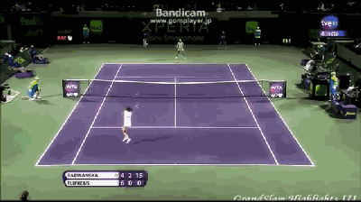 背后击球很好理解啦,这一回终于轮到女士登场。“Hot Shot女王”拉德万斯卡当仁不让,菲利普肯斯就算气愤到扔拍,也无法阻止波兰人绽放自信的笑容。