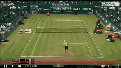 迪米特洛夫自出道起就有“小费德勒”之称,这并非浪得虚名,他同瑞士人一样灵敏。这个机智的背后截击,或许有运气的成分吧,然而得分了就是得分了,特洛伊基只能无可奈何的望球兴叹了。