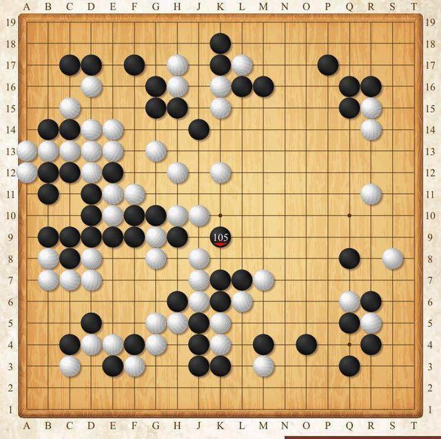 黑棋步步紧逼,白棋步步退让。为了安全运转,柯洁放任黑棋右边穿掉一子。柯洁为了十多目,损了近三十目。金志锡不给柯洁任何喘息之机,在左下突施冷箭。面对未曾准备过的招法,读秒中的柯洁慌乱了,形势瞬间混乱了。金志锡的耐心,得到了应有的回报。