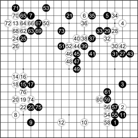 黑77、79好次序,是著名的手筋。白80、82争先,贤明。
