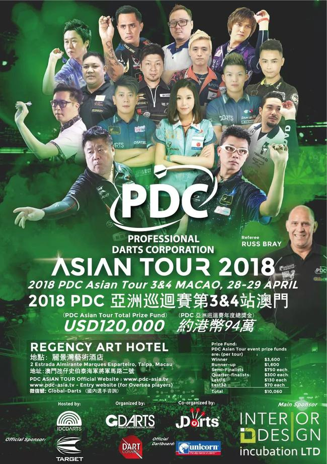 2018 PDC 亚洲巡回赛第3 & 4站将于4月28、29日在中国澳门举行。