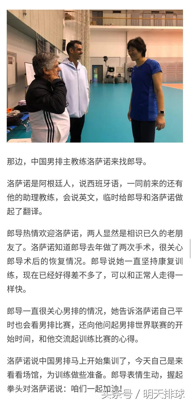随着排超进入尾声,男排国家队2018年度的国际赛事也摆上日程。日前,阿根廷籍主教练劳尔-洛萨诺(Raul Lozano)已回到北京,在前往训练馆勘察场地的时候还与郎平见面寒暄,相信新一年的中国男排的集训大名单不日也将出炉。