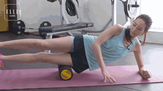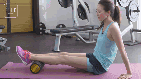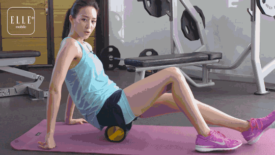 来看看拥有一双修长美腿的张钧甯是怎么用泡沫轴放松双腿的: