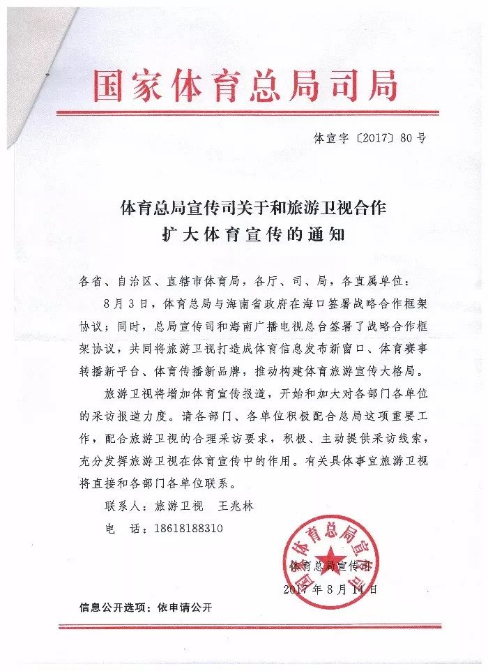 ▼国家体育总局和旅游卫视合作成立了国家体育总局电视宣传中心