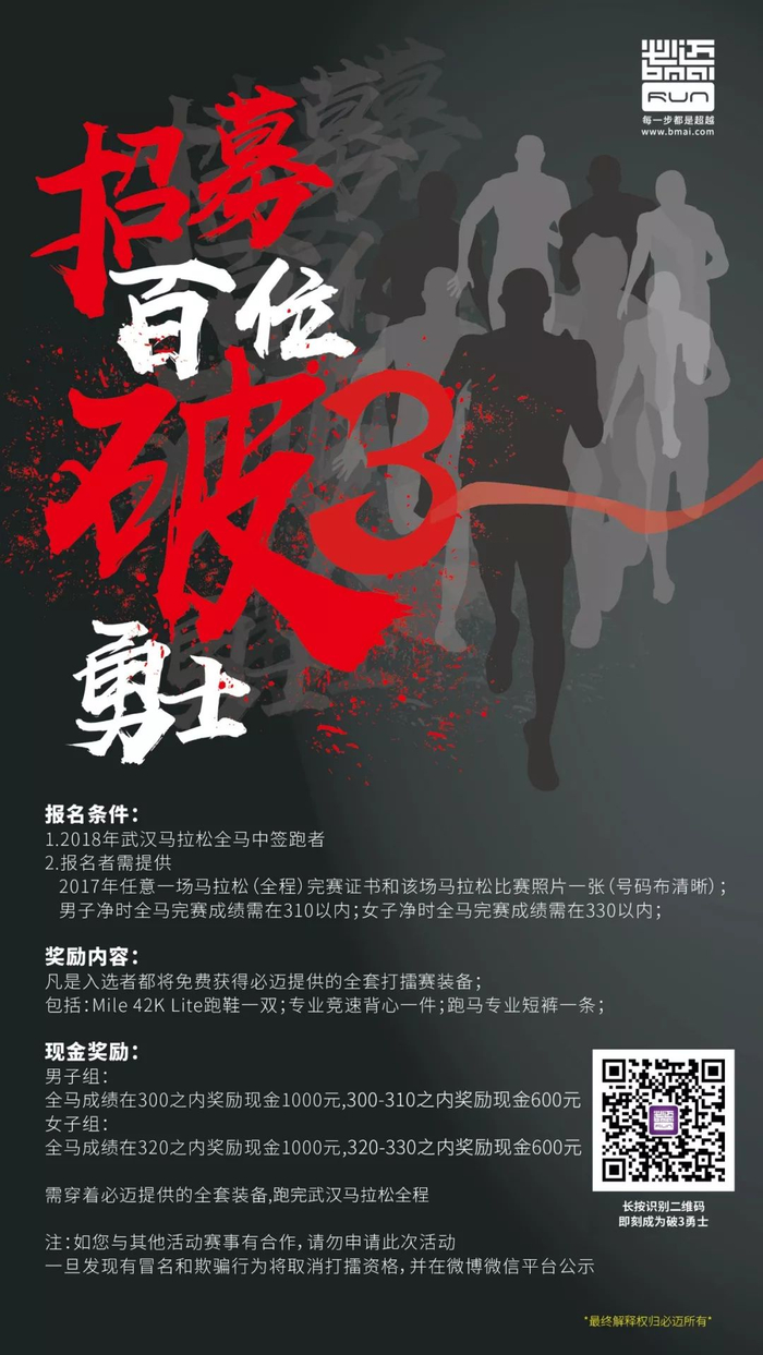 2018汉马又分10W现金,破3另有装备+千元现金奖励!