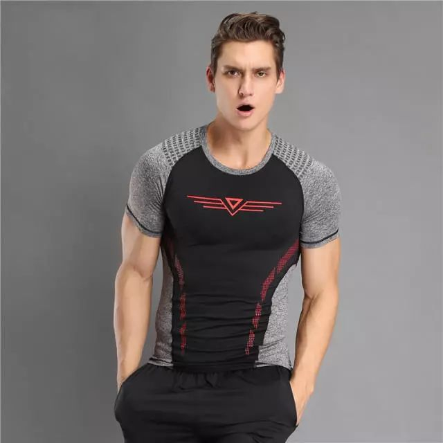 男士高弹紧身衣 红拼灰 黑拼红