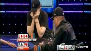 这个最小加注让Hellmuth得到了5:1的跟注赔率,你会怎么想?Tran的这个动作其实让他在翻牌的范围极化了。