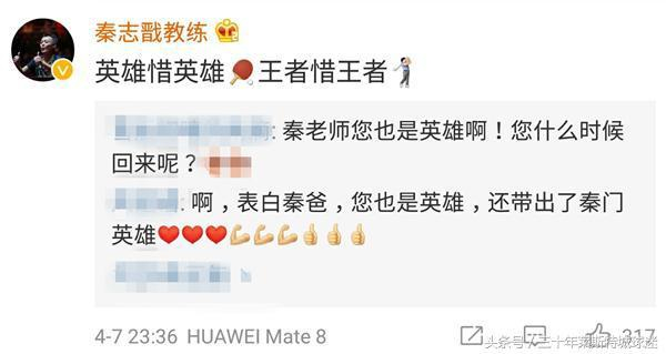 就在昨天,刘国梁刚上传了自己在健身房挥汗如雨的场景,同时致敬了同龄人高尔夫球举行老虎伍兹的复出,球迷都在欣喜胖子难道真要出山了,不过他的好友、王楠老公郭斌却直呼看不懂。而和他同是国乒失意人的前国乒男队主教练秦志戬深夜难眠,给刘国梁留言:“英雄惜英雄,王者惜王者!”引发球迷诸多感叹。