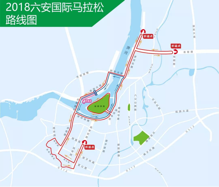 5月6日,2018六安国际马拉松将在魅力六安热力开跑。从六安马拉松官方公布的路线图中我们可以看到