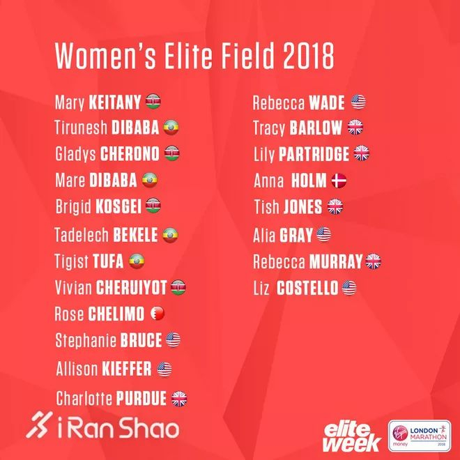女子选手方面,目前女子精英选手已经齐集伦敦,今年的看点是Mary Keitany能不能实现她赛前的目标,打破女子马拉松世界纪录。