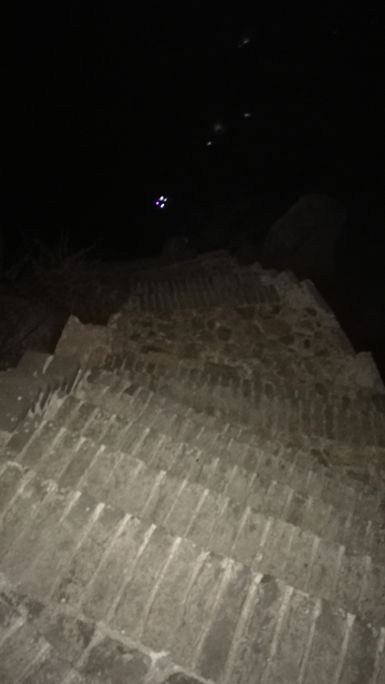 和049一起跑,一路很顺畅,名次变化不大,很快就到了最后一个补给点。这里的特色是有咖啡,还有大碗牛肉面,志愿者说喝点咖啡吧,可以防止困倦。我一般很少喝咖啡,这次喝了一大杯。又吃了一大碗热汤牛肉面,刚出锅的,太烫,我愣是往里面加了半瓶宝矿力,看得志愿者一愣一愣的,这种饮食的组合估计她是第一次见到。加了宝矿力的牛肉面凉快了很多,张开大嘴,也不咀嚼,直接全部倒进胃里。快速吃了一些罐头喝了一些罐头汤,还有一把葡萄干,就上路了,虽然是最后一站,我在这里停留的时间比较短。
