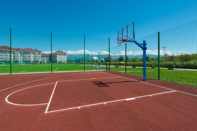 专业体育场包含:40m*20m 5人足球场、60m*40m 8人足球场、94m*70m 标准足球场、«SALTEX» POLAR 5007, 50毫米厚度 , 人造草、配备4个5.60*2.35寸球门、32m*19m 篮球场、32m*19m Saltex地面,篮球和排球场、42m*22m 网球场和手球场。