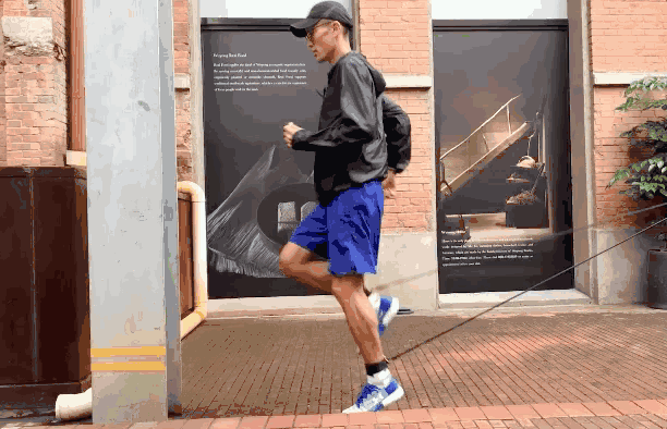 好的跑姿就是像原地跑,而原地跑的准则,就是脚一直臀部正下方。听起来容易,做起来难,真的跑起来之后,因为阻力增大,你会发现脚总是不知不觉就落在了身后,跑得越快越是这样;正因如此,有强度的原地跑训练对改善跑姿非常重要。在原地跑的过程中,用弹力带给自己一些负荷,同时努力保持脚一直在臀部下面,可以在模拟原地跑的同时很好地动用真实跑步时需要用到的肌肉,从而起到进行有强度原地跑的效果。