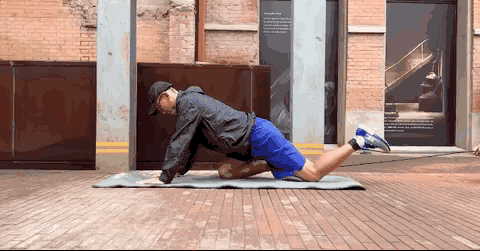 俯卧撑姿势,双手手掌与双膝支撑地面,脚掌向臀部反复拉动。