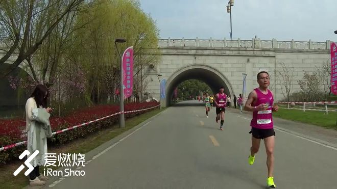 进入江南大学,看到前方有一支人数较多的队伍,由一群男选手和一名女选手组成,于是跟上他们。半程用时1:27:40左右,要实现赛前的目标,后半程用时要在1:30:20左右,平均配速417.