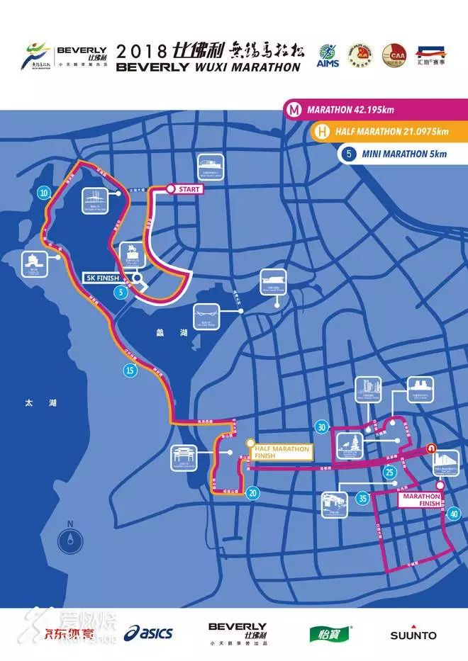 第一公里配速403,感觉偏快了,413左右才是计划的配速。不过身边人都很快,还有不少女选手超越而去,感觉还可以,于是基本保持配速。进入蠡湖景区,前5公里平均配速406.