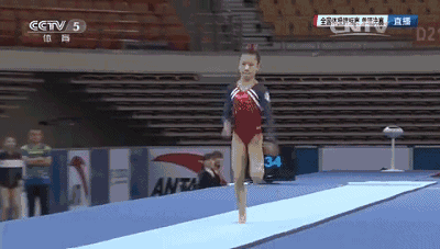 陕西妹子,也有两跳,进过全锦赛的单项决赛,也是去年冠军赛资格赛跳马第一的获得者。