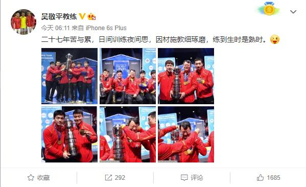 国乒在本次瑞典世乒赛上男女团纷纷实现卫冕,2018年五月九日,也是作为随队一同前往世乒赛的国乒金牌教练吴敬平的生日,他在微博上作诗发表了对自己执教生涯的感慨。