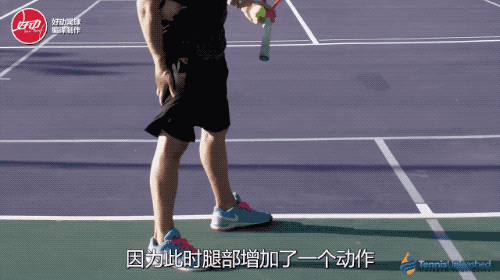特别需要一提的是,在曲膝蓄力的过程中,后脚向前滑动距离不可过度, 如上图所示,后脚移动错误导致过早地打开了髋部,反而影响了发球。