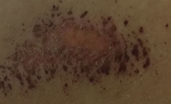 不专业的运动内衣肩带将肩部磨伤后的结痂照