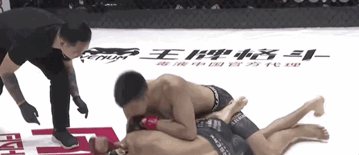 站立,就是唐凯的天下了。连续两次高扫击中了对手,虽然没有KO但明显给了对方重创。唐凯乘胜追击,将尼克雷放倒后开始了疯狂的地面拳和肘击。