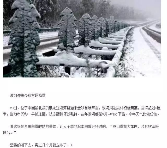 而漠河2017年的雪也比以往来的更早一些