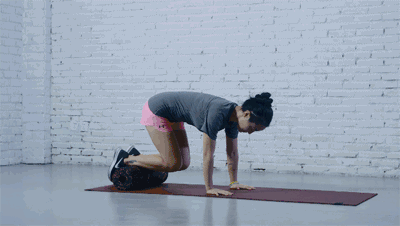 注意避开腰椎位置,臀部离开地面来回滚动 15-30次