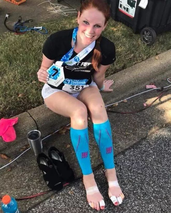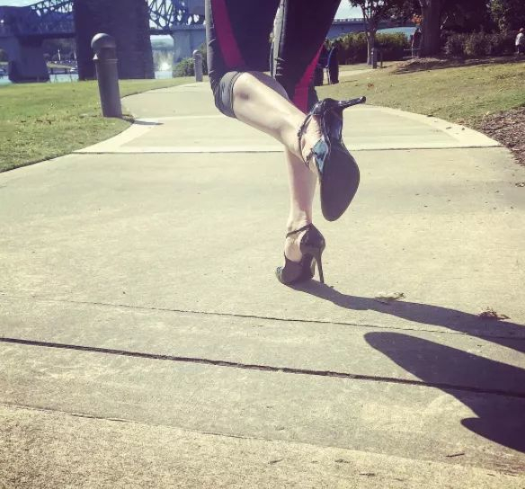 Sewell大部分时间都是穿着网球鞋跑步,然后每隔一段时间就会穿高跟鞋跑3到7英里。有时候为了让脚做好准备,她也会一整天都穿高跟鞋。