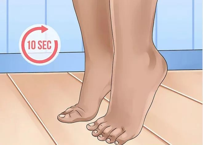 当你站在地面上,或者踩着你的脚后跟踩在台阶上时,踮起脚尖,坚持10秒钟,然后慢慢地放下身体,重复10次。