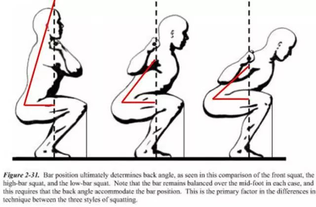 相关研究发现也证明此说法,在下蹲过程中限制膝关节前移可以使膝关节处的受力从150.1±50.8Nm减少到117.3±34.2Nm,但是限制膝关节前移情况下的下蹲练习使髋关节的受力从28.2±65.0Nm增加到302+71.2Nm,也即增加了躯干的前倾角度,从而增加了腰椎的受力。