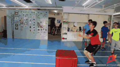 训练方法:找一只足够结实的箱子或台阶,其高度要达到极限屈膝跳且能保证安全的程度。箱子前方拉一根绳,双腿越过绳点地后迅速跳至箱子上面,屈髋屈膝,然后走下箱子,完成第二次越绳动作。在保证安全的情况下试图每组增加一点箱子或绳子的高度。
