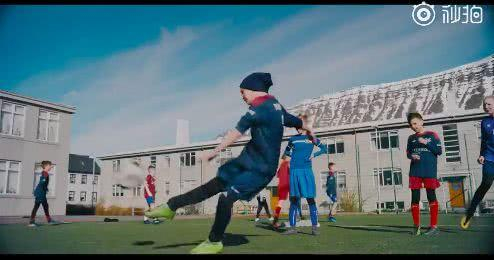 广告中的很多场景也挺有含义。广告一开始,几个小孩穿着厚厚的衣服,在雪地里踢球。这是一年7个月是冰雪天的冰岛曾经的足球难题。
