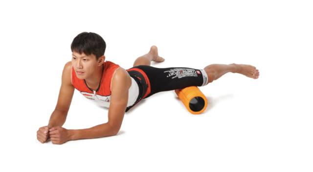 如果今天是我的休息日,我会花两小时来做主动恢复,每个部位做3组,依顺序从肩胛骨开始,先拉伸后再用滚筒缓慢地来回滚动30秒,滚动的过程中寻找痛点,30秒后就特别按压在刚发现的痛点上,以同样的压力按到痛感逐渐消失为止,接着拉伸,这样算一组,再重复两次。