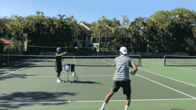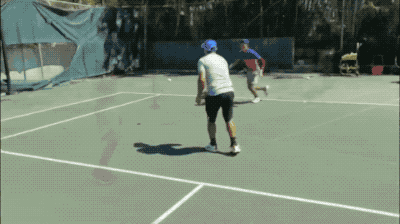 如上图所示,在结束第一项训练后,直接进入击球训练,以正反手击球,教练共喂6球。