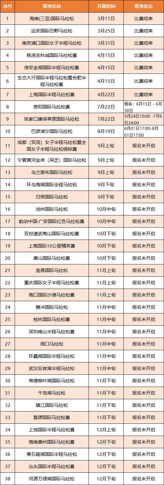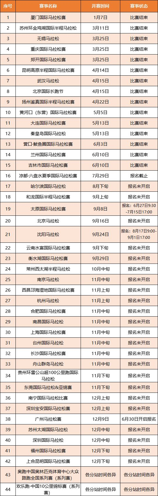 备注:由于下半年一些赛事,官方还未公告具体比赛时间;未开启报名的赛事,小编参考2017年比赛的大致时间进行整理,如有疏漏,请各位跑友留言补充。比心