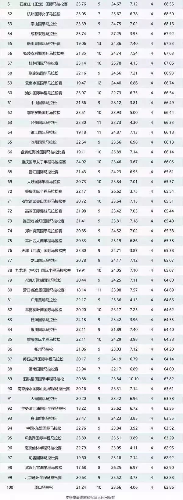 附:由人民体育、人民网舆情数据中心共同制作的“2017最具影响力马拉松赛事排行榜”Top100。