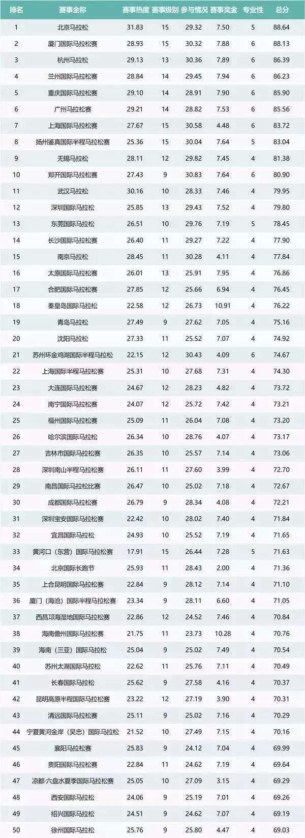 (备注:其中,A1、A2、B类赛事成绩数据均在“中国马拉松”官网显示,但成绩能计入排名的只有A1类赛事)