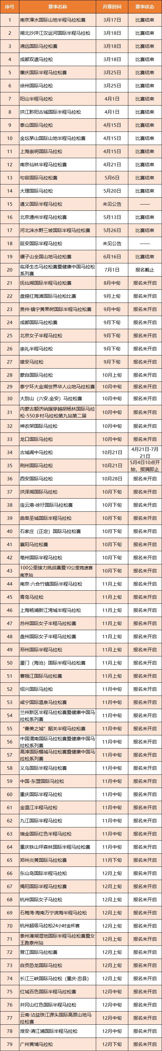 2. 全国半程马拉松锦标赛系列赛扬州站:4月22日(星期日)